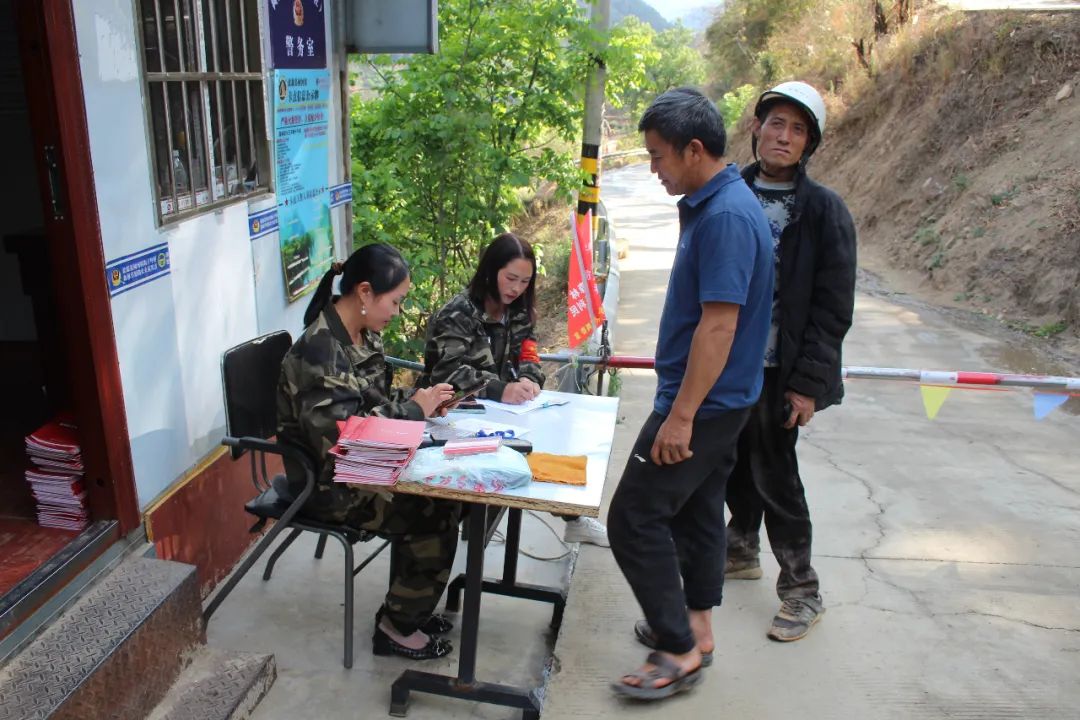 海子坪村防灭火卡点,驻守人员登记往来人员信息