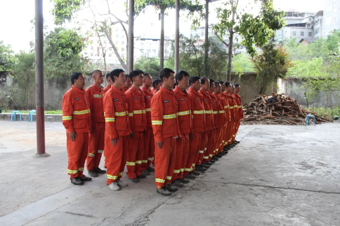 在树河片区专业扑火队驻地,演练归来的扑火队员正在集合列队。树河片区林业工作站站长邱宗国负责这支专业灭火队的管理。作为一名退伍军人,他充分运用军营经验,按部队标准为扑火队制订军事化训练计划。