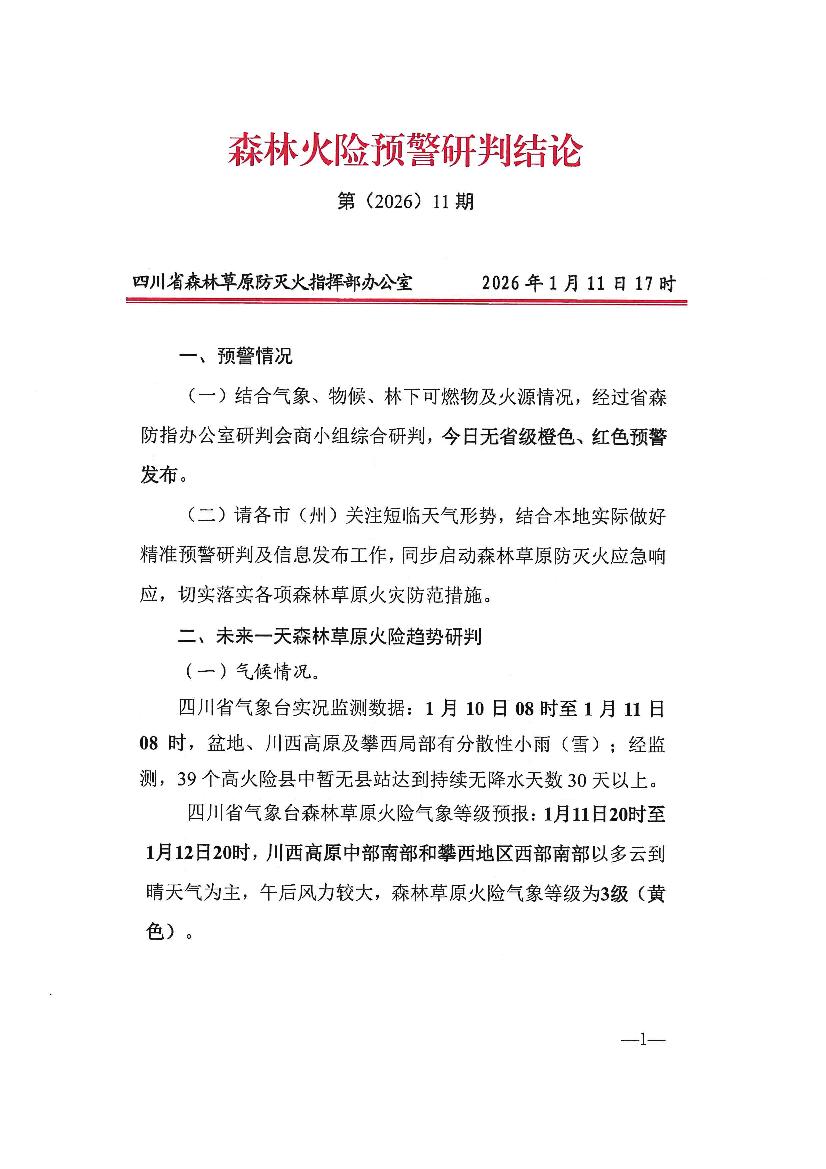 森林火险预警研判结论第(2026)11期