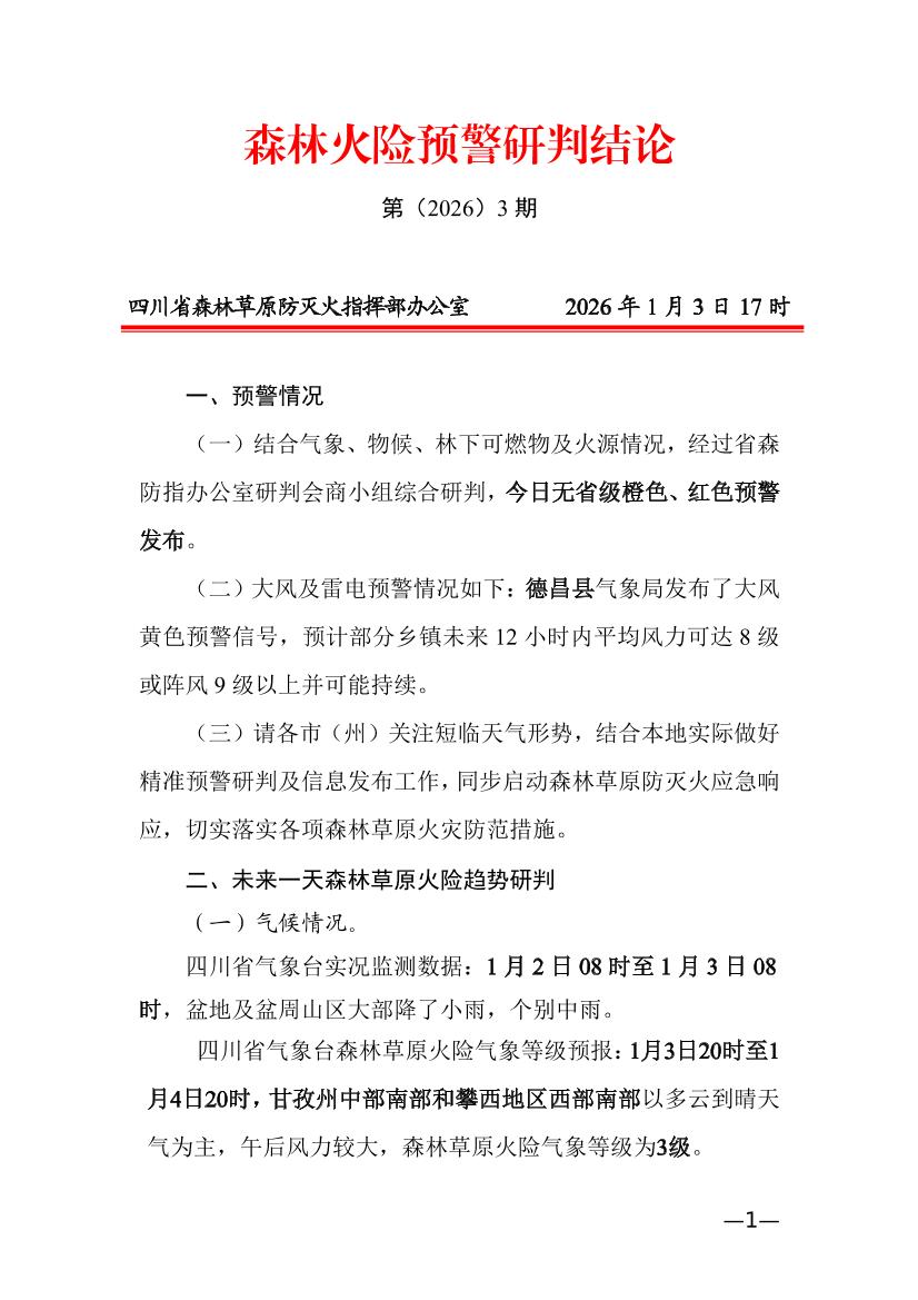 森林火险预警研判结论第(2026)3期