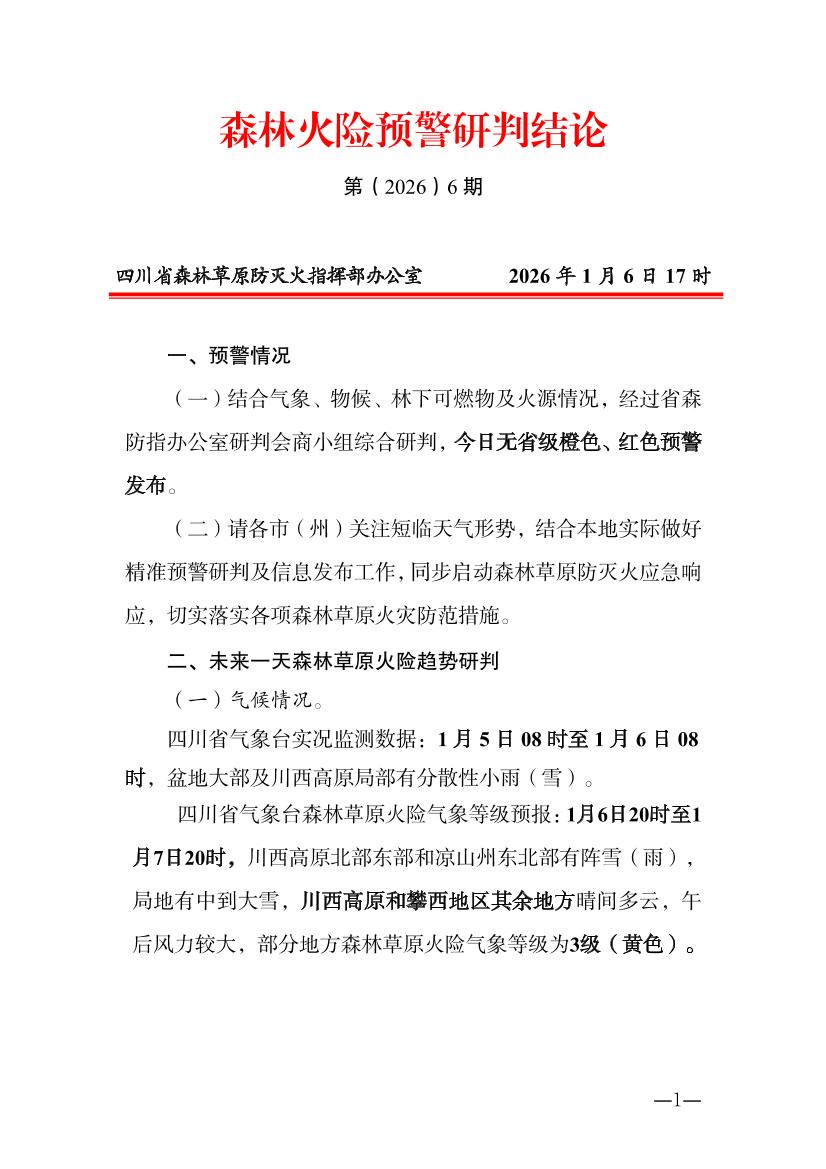 森林火险预警研判结论第(2026)6期