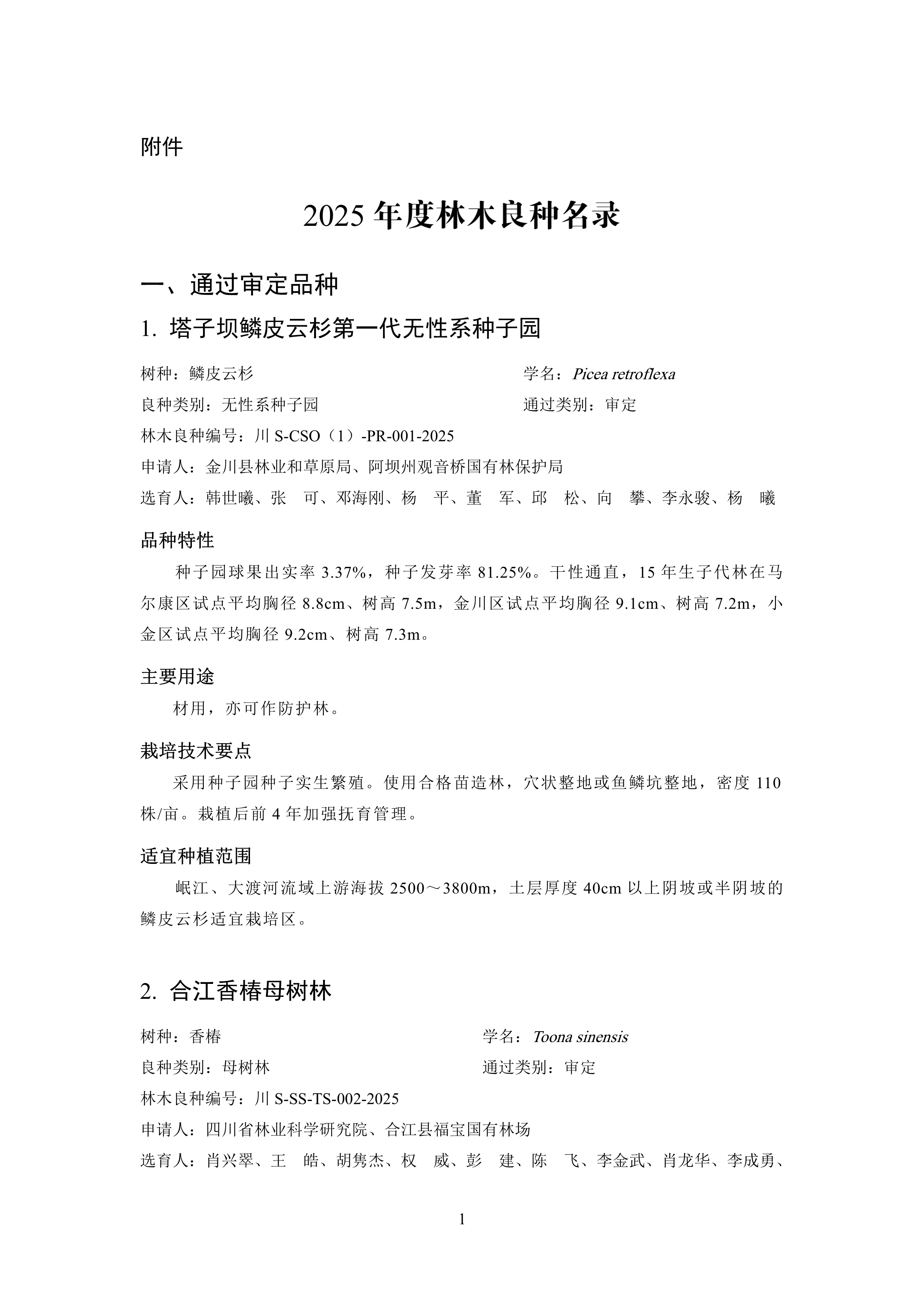 2025年度林木良种名录